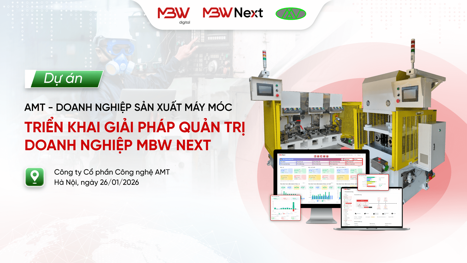 Ngày 26/01/2026, MBW Digital và Công ty Cổ phần Công nghệ AMT (AMT) chính thức khởi động dự án “Giải pháp quản trị chuyên sâu doanh nghiệp Gia công sản xuất MBW Next”. Dự án đánh dấu bước chuyển mình quan trọng của AMT trong việc xóa bỏ quản lý rời rạc trên bảng tính Excel và các quy trình phê duyệt bản cứng thủ công. Thông qua MBW Next, doanh nghiệp kỳ vọng chuẩn hóa toàn bộ chuỗi giá trị từ hoạt động kinh doanh, mua hàng, quản lý kho hàng theo serial/lô, đến sản xuất máy móc và kế toán quản trị.