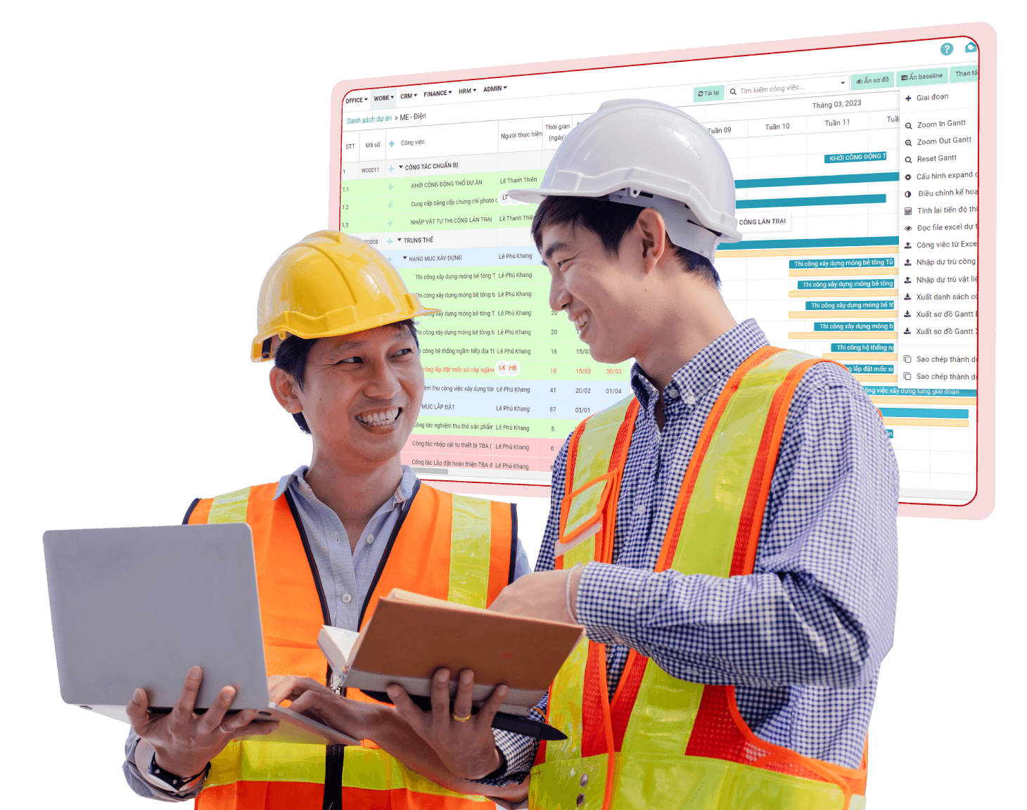 Khởi tạo và quản lý kế hoạch thi công (Gantt chart), phân rã chi tiết từng hạng mục thi công, công việc con theo cấu trúc WBS kèm thời gian và người phụ trách cụ thể