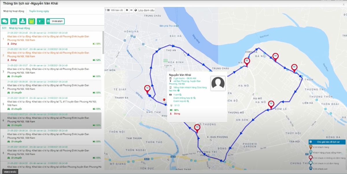 • Theo dõi lộ trình di chuyển trực quan, nắm rõ cung đường và các điểm đã ghé trong ngày.